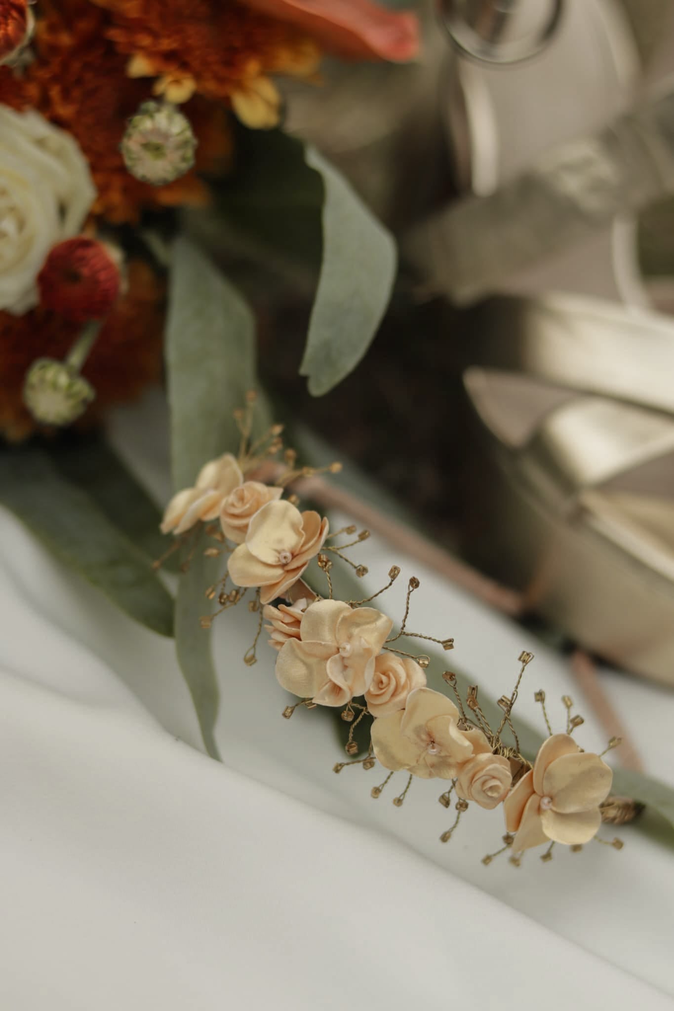 Uma bandolete que celebra a beleza das estações e transforma cada noiva num verdadeiro sonho de outono.
