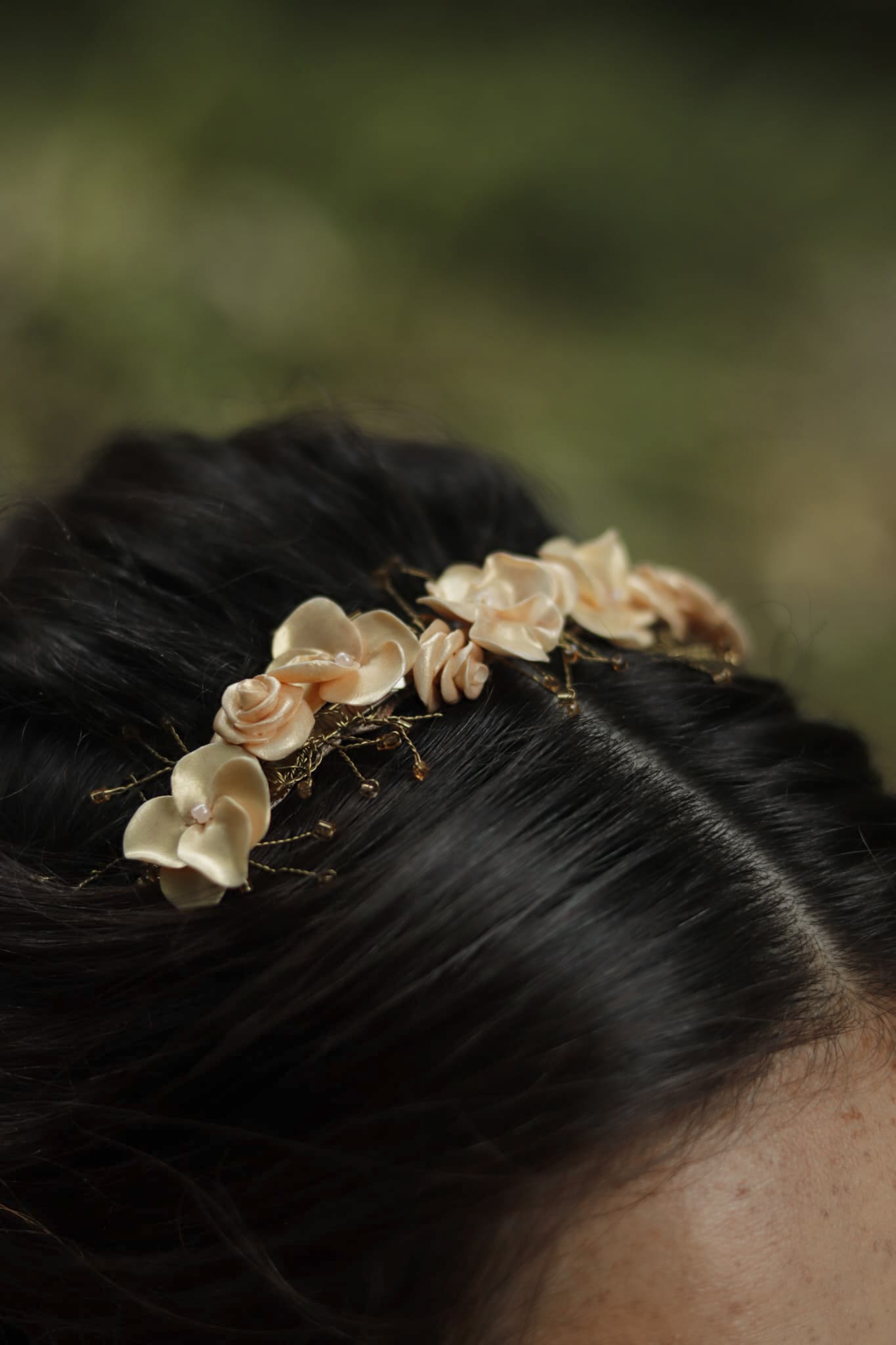 Ideal para casamentos ao ar livre, cerimónias boho-chic ou ambientes românticos, a Fall Dreams complementa penteados soltos, semi-presos ou ondas naturais, elevando o visual com um toque poético e artesanal.