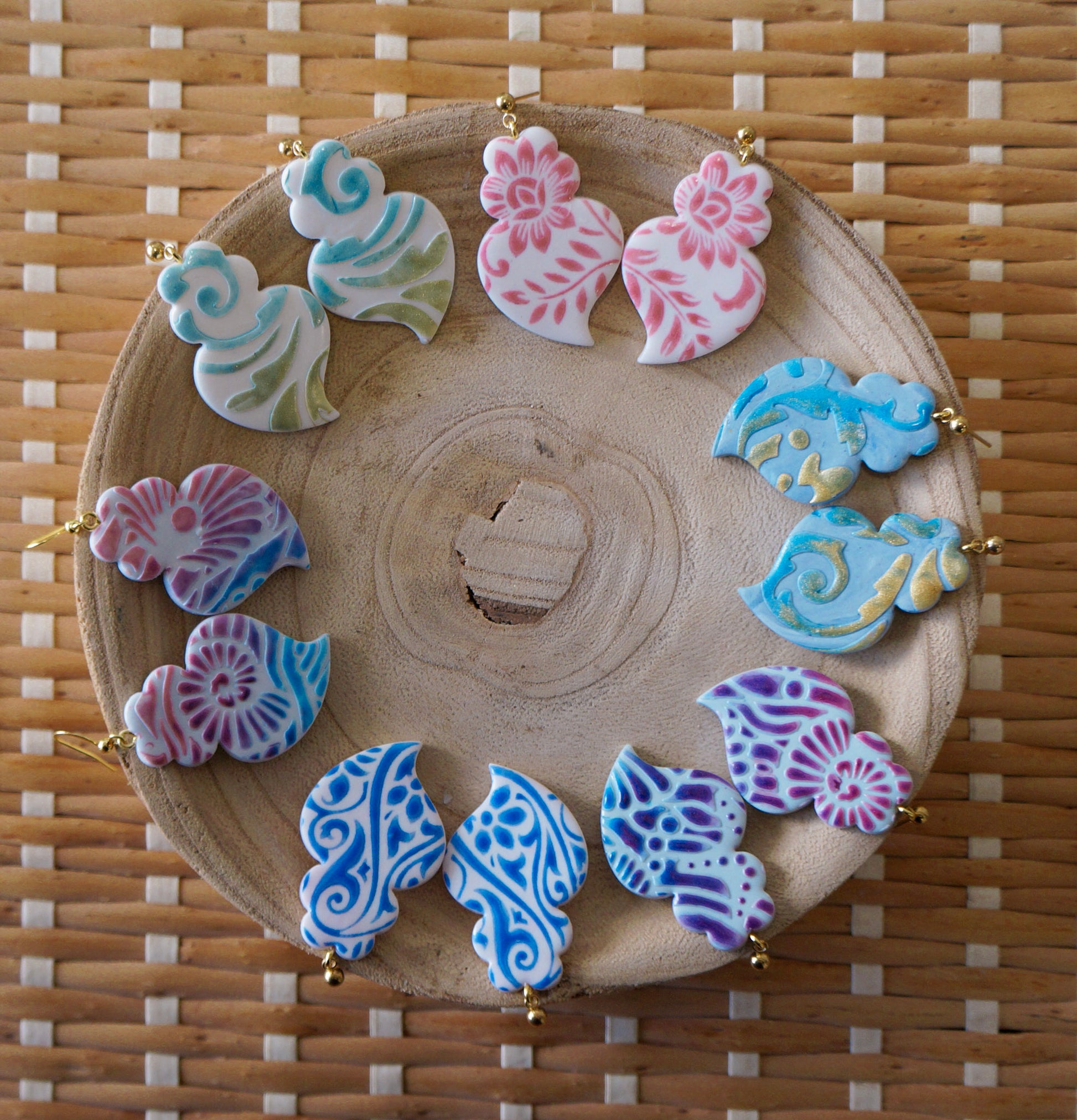 ATENÇÃO: ao encomendar os brincos eles não serão exatamente iguais às fotos, a disposição dos ornamentos mudam para que sejam pares únicos, as fotos são para se guiar nas cores. Para mais informações você pode sempre entrar em contato pelo Instagram ou WhatsApp.